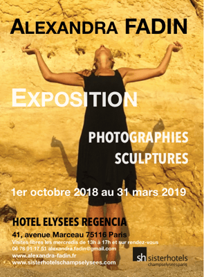 The Elysées Regencia Hotel, located 41 avenue Marceau (Paris 16th), presents nude bronze sculptures, a large sculpture in aluminium paper and acrylics (« The Ondulation Woman »), as well as photographs of sculptures and dances in nature and in the city, in Paris, Saint-Malo and in the Algarve (Portugal).