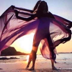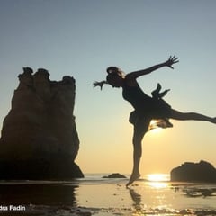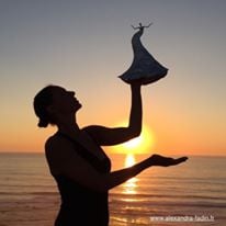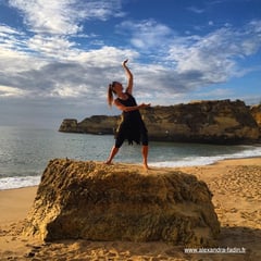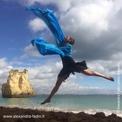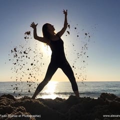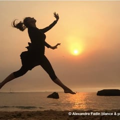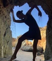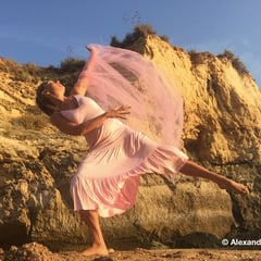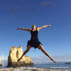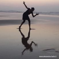 Autoportraits dansés dans la nature, souvent sur la plage au lever du soleil, en connexion avec les éléments, comme une célébration de la vie, joyeuse et mystérieuse, entre rêve et réalité.
