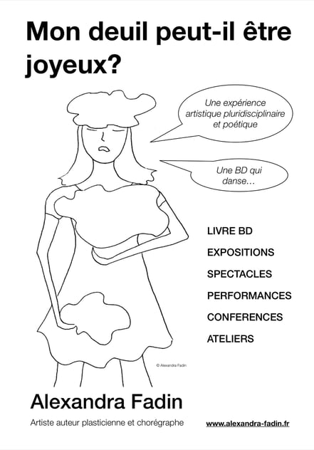 Ces moments de partage sont animés par Alexandra Fadin, artiste auteur plasticienne, danseuse chorégraphe et auteur du Livre BD Deuil, qui désire échanger avec le public d’une manière originale, authentique et poétique, en intégrant la danse et la vidéo dans ses interactions avec le public.