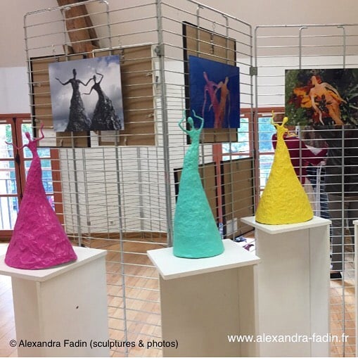 Exposition de sculptures (nus en bronze, danseuses en aluminium et acrylique), photographies de sculptures et photographies de danse d'Alexandra Fadin.